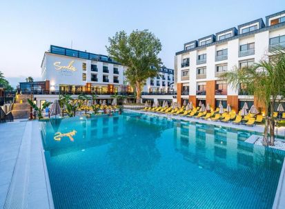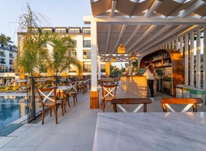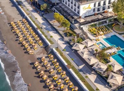 Плаж: хотелът се намира на 1 минута пеша от пясъчен плаж Calis. Шезлонги, чадъри и хавлии - безплатно на плажа и при басейна.